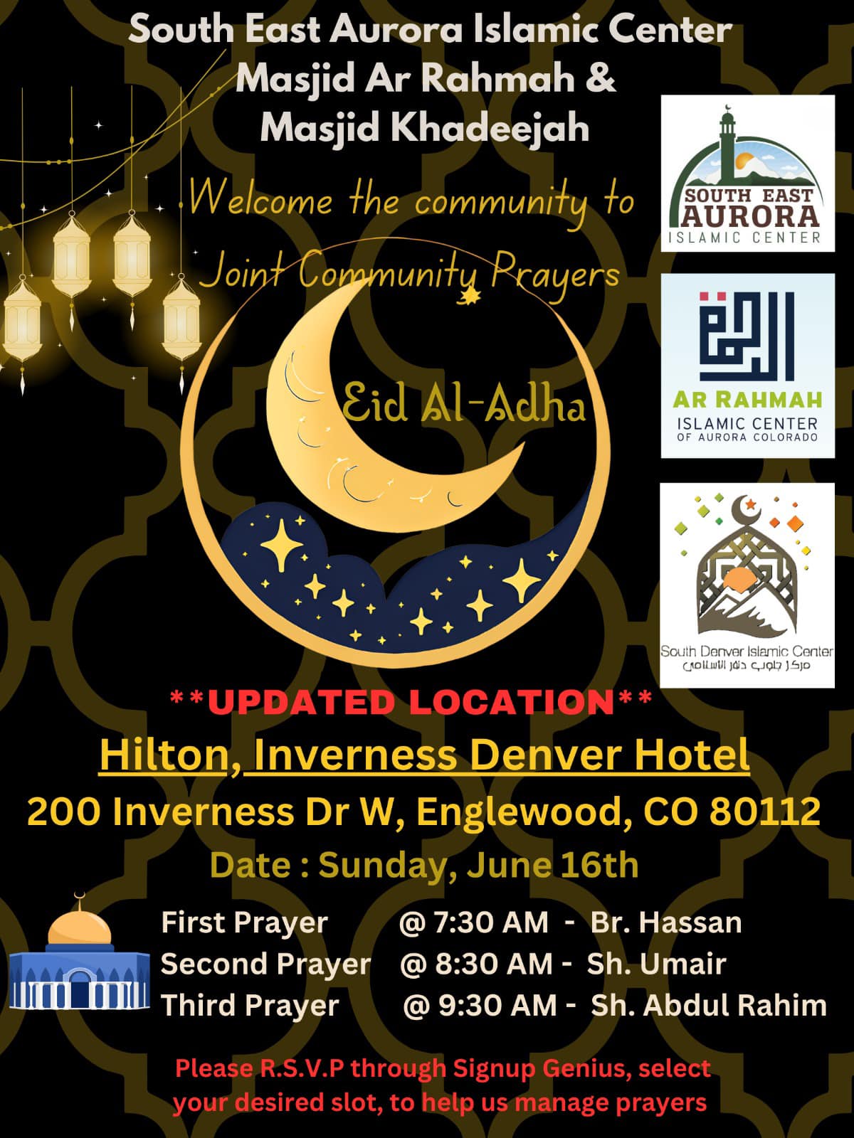 Eid Mubarak! Please join us for Eid Prayers on Sunday June 16th at the Hilton Inverness Denver Hotel (200 Inverness Dr W, Englewood, CO 80112). […]