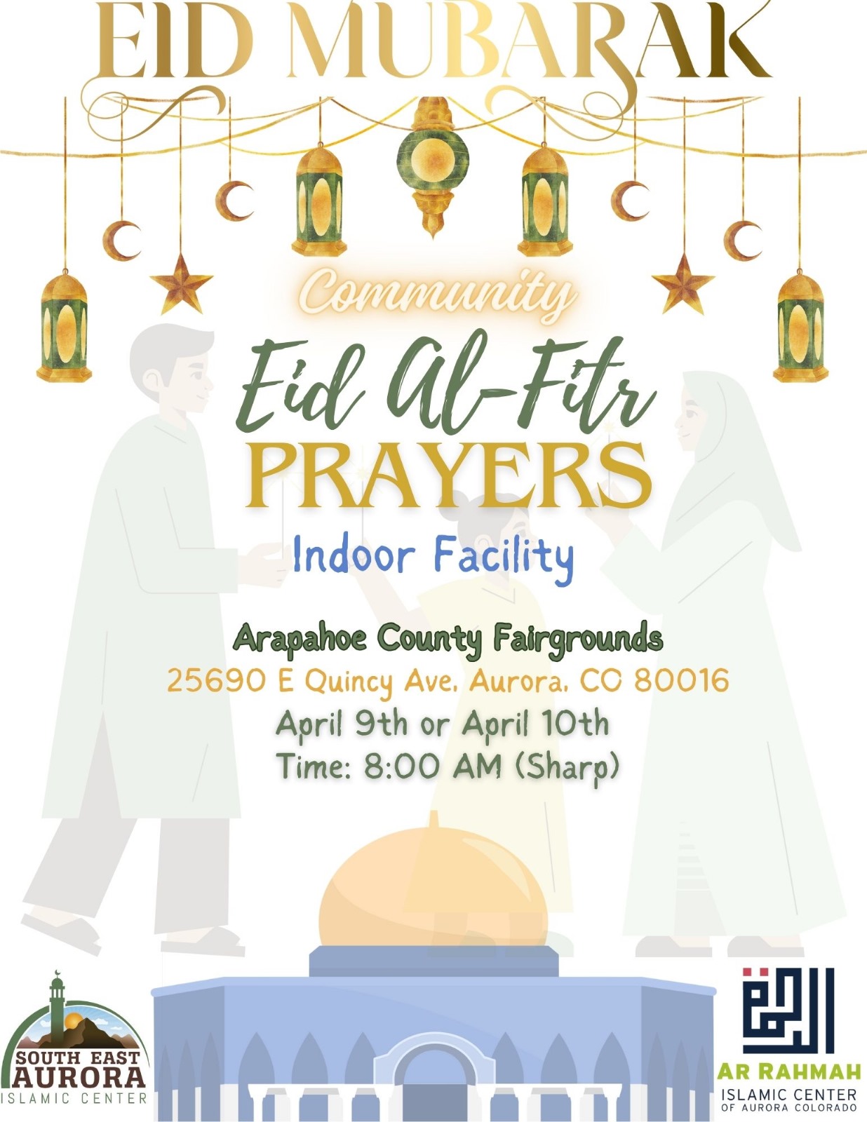 Eid Mubarak! Please join us for Eid Prayers at the Arapahoe County Fairgrounds (25690 E Quincy Ave, Aurora, CO 80016). Prayers will start at 8:00am […]