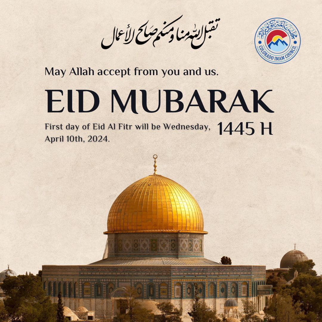 Colorado Imam Council: Eid Al Fitr Wednesday April 10th. The Colorado Imam Council has announced that Tuesday April 9th will be the completion of the […]